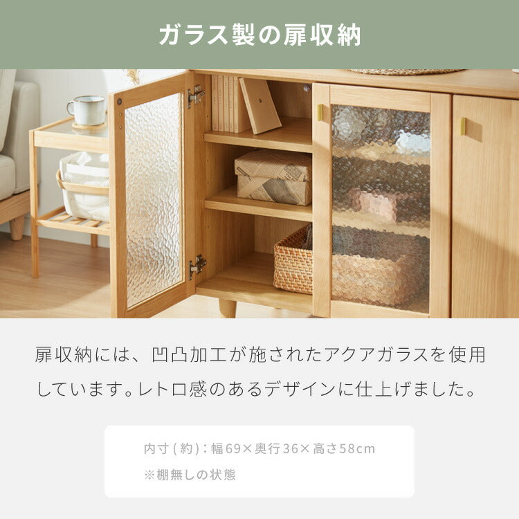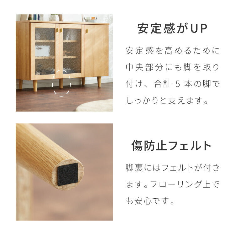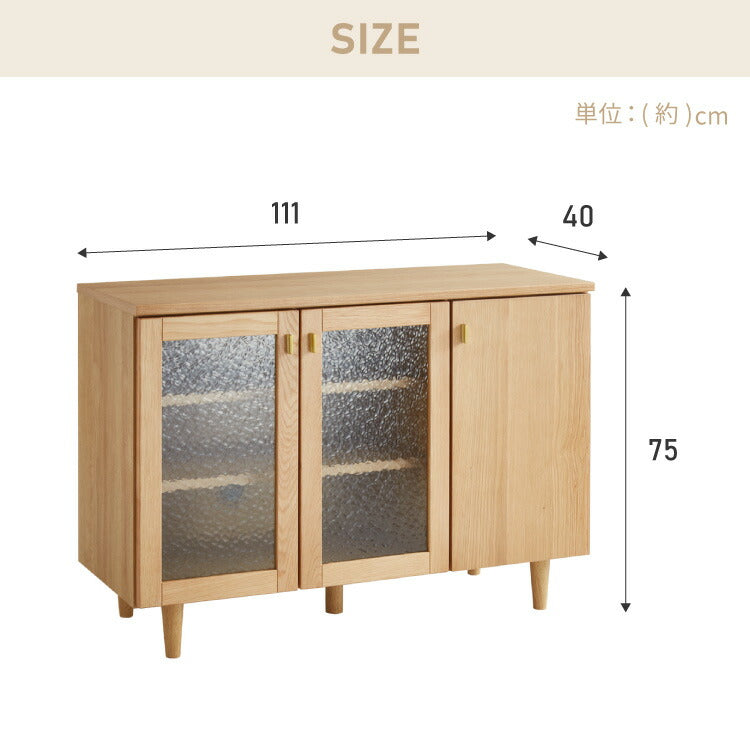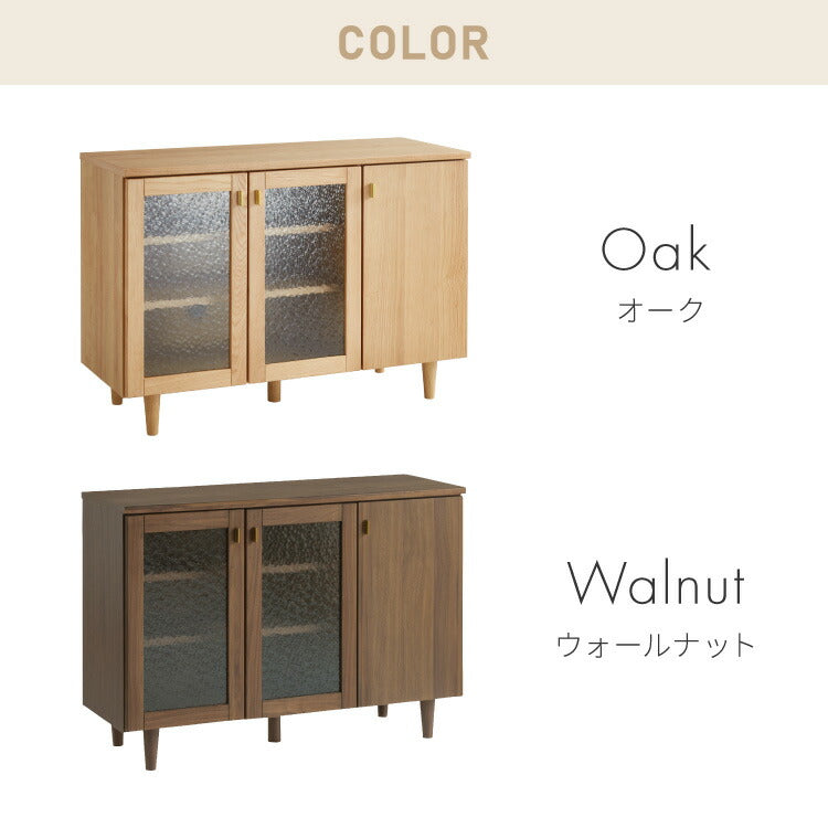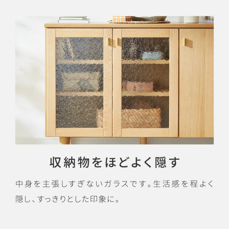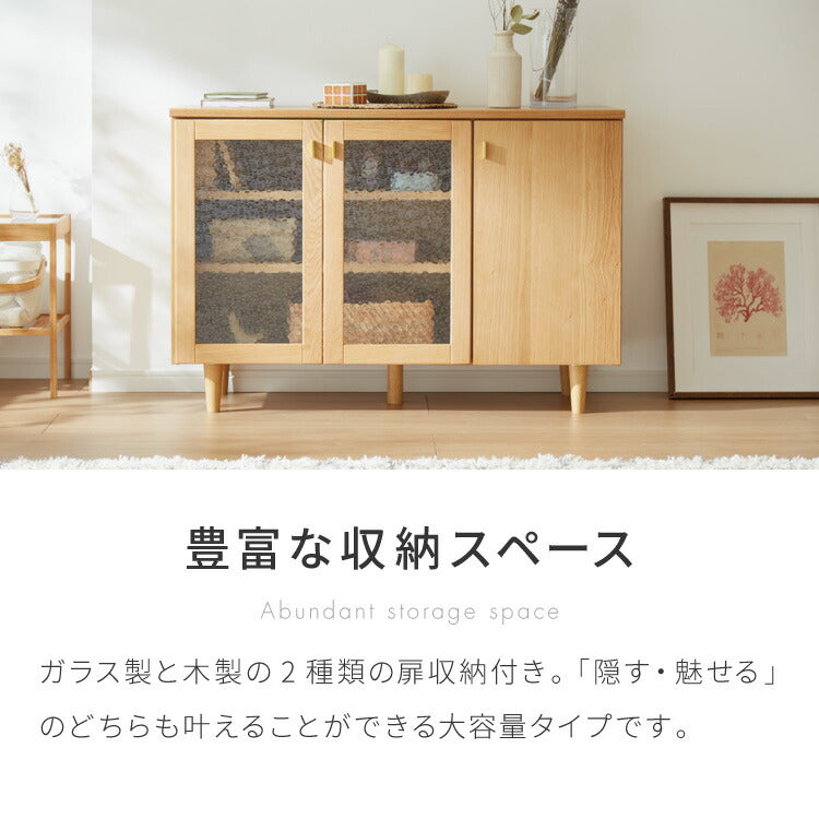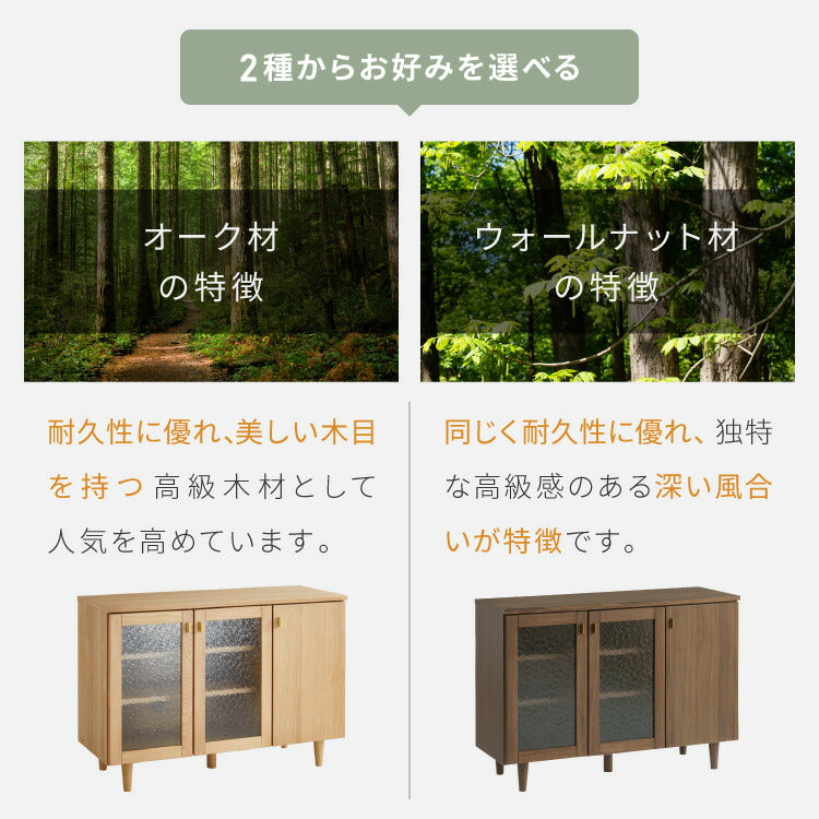 キャビネット 幅110cm サイドボード 天然木 脚付き ガラス扉 リビングボード 収納家具 サイドチェスト オーク ウォールナット 木製 リビング ダイニング(代引不可)