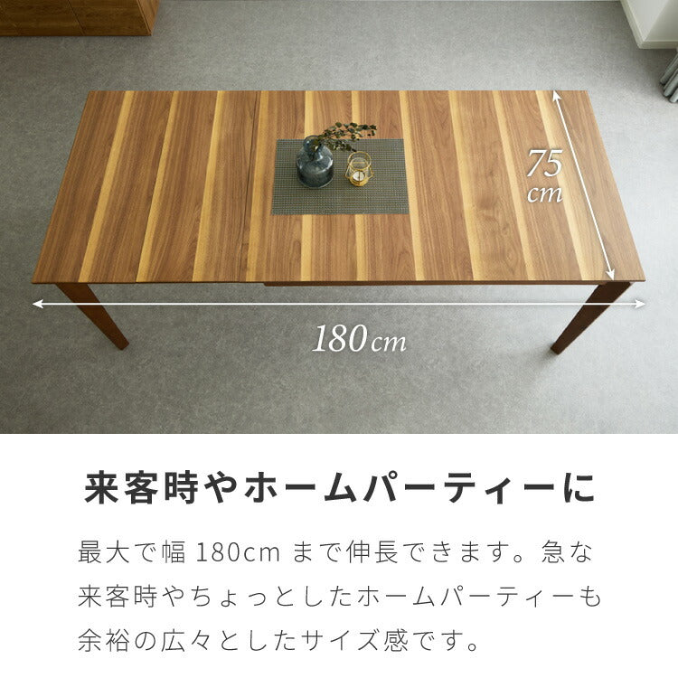 ダイニングテーブル 3段伸長式 伸長式ダイニングテーブル 幅120-180 4人掛け 6人掛け 木製 大人数 来客用 食卓 テーブル 北欧 木目 食卓机 ダイニングデスク 天板拡張 天板調整 高級感(代引不可)