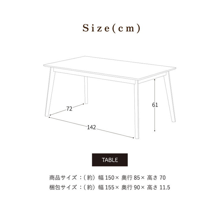 テーブル:幅150×奥行85×高さ70cm