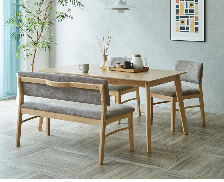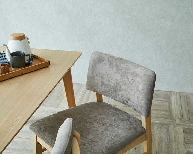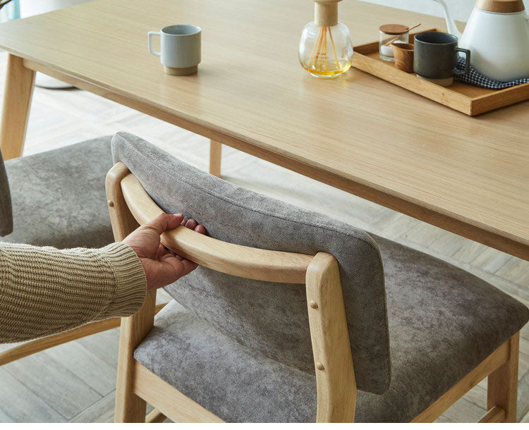 上質なオーク突板を使用した、素材の風合いを楽しめるダイニングセットです 。150cmのゆったりとした天板は、食事だけでなくデスクワークや家族の団らんにもぴったりです。