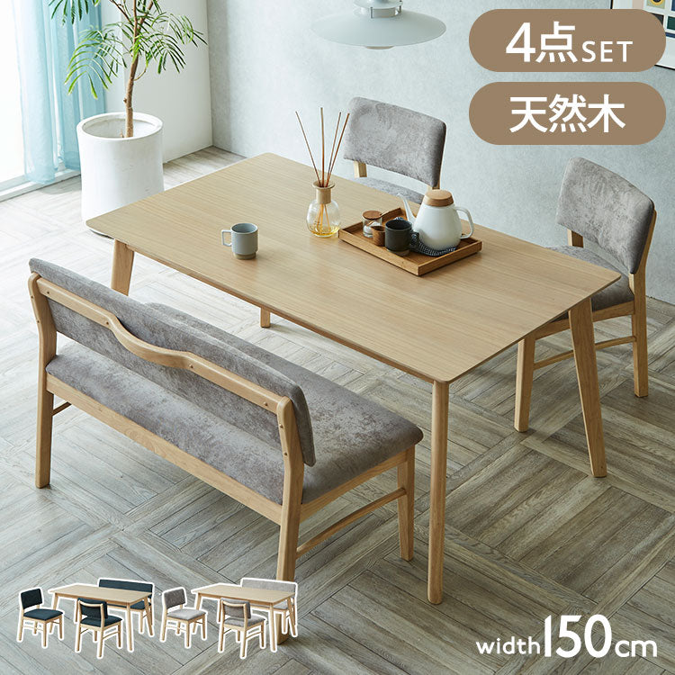 ダイニングテーブルセット 【開梱設置付き】 4点セット 150cm幅 背付きベンチ チェア2脚 ダイニングセット テーブル 4人掛け 天然木 取っ手付き チェア 北欧 モダン ナチュラル おしゃれ インテリア(代引不可)