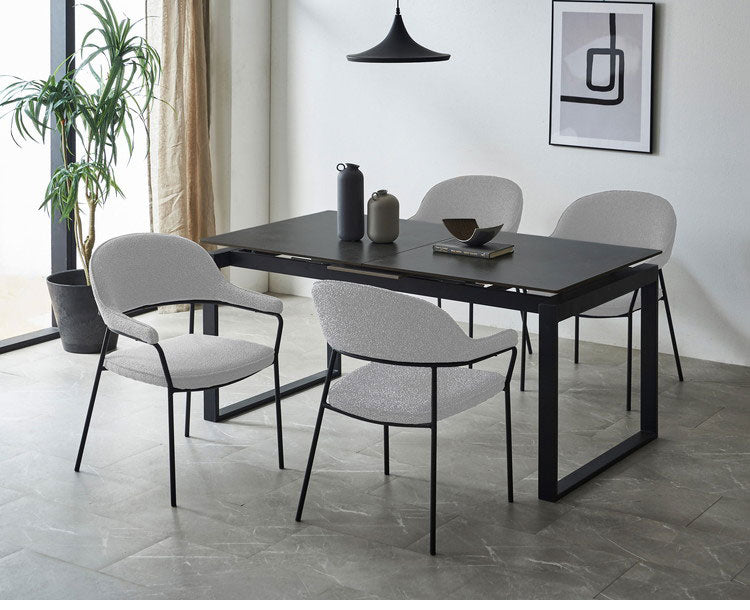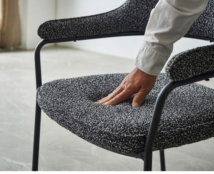 ダイニングチェア ジャーナル 2脚セット ブークレ調 椅子 イス チェア アイアン脚 モダン おしゃれ 北欧 デザインチェア 肘付き ラウンジチェア カフェ 肘掛け ファブリック 布地 1人掛け