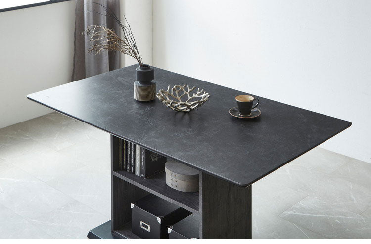 セラミックテーブル 140 ダイニングテーブル 収納棚付き 4人用 モダン セラミック天板 収納 ラック 食卓 作業台 デスク 傷防止 耐久性 モノトーン ダークグレー ライトグレー インテリア 片づけ(代引不可)