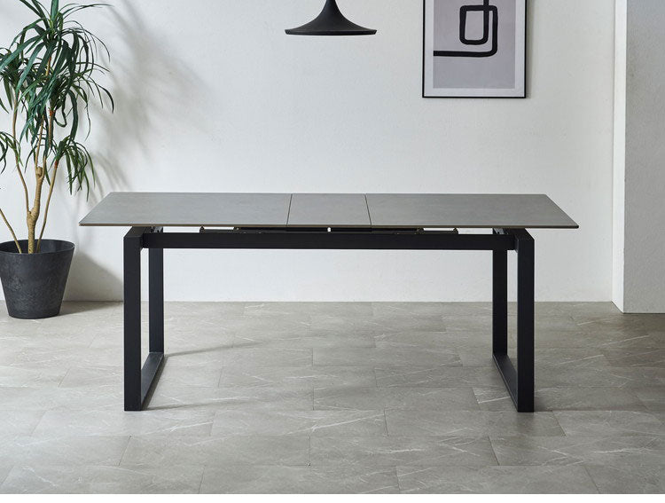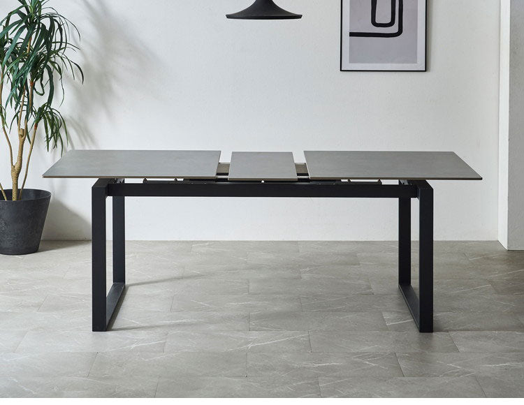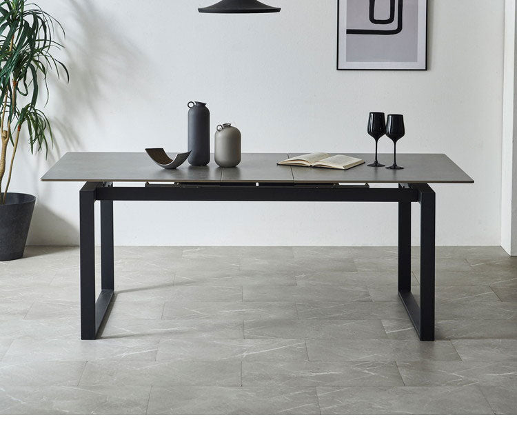 ダイニングテーブル 伸長式 セラミック 天板 150cm 180cm 4人 6人掛け 単品 伸縮 ダイニング テーブル セラミックテーブル 食卓 傷に強い 汚れに強い 耐熱 大理石調 モダン アイアン脚 グレー(代引不可)