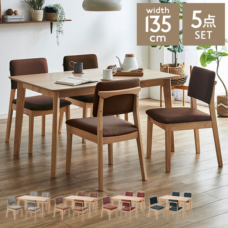 ダイニングセット 5点 4人掛け メルロー テーブル幅135cm チェア 4脚 【開梱設置付き】 オーク 突板 天然木 木製 北欧 ナチュラル モダン ダイニングチェア 椅子 食卓セット 4人掛け インテリア(代引不可)