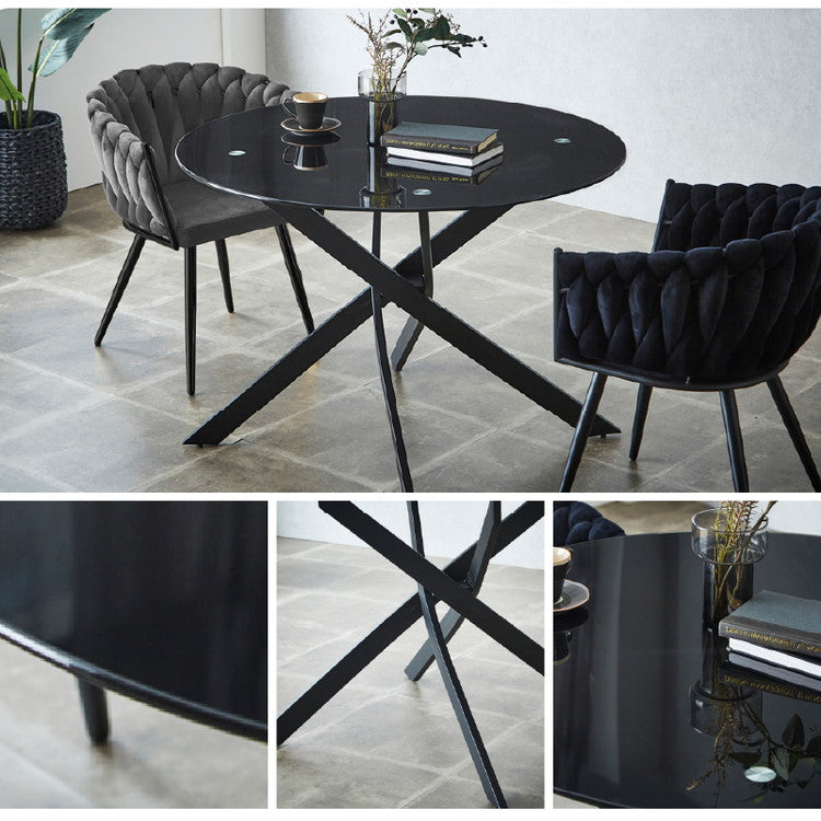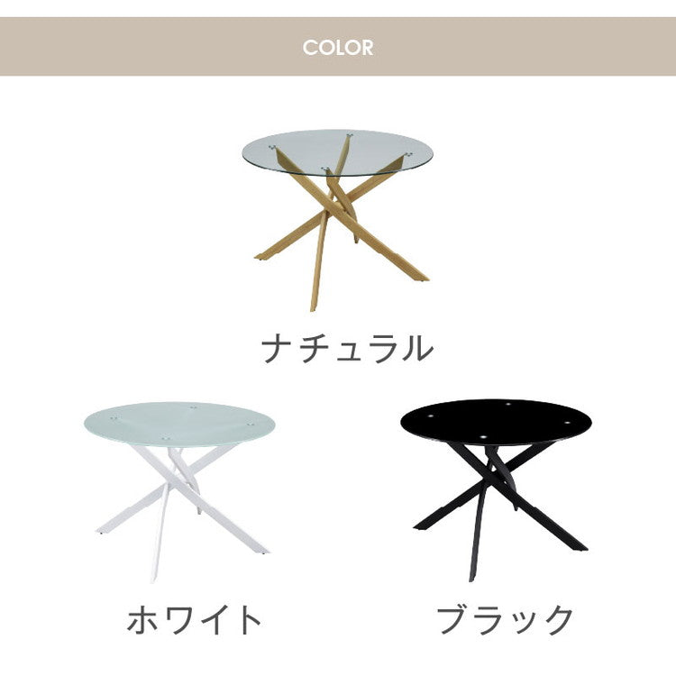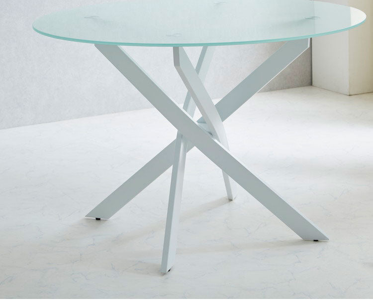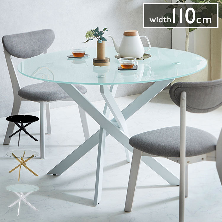 ガラス ダイニングテーブル ルイーズ 幅110cm 強化ガラス 10mm厚 2人~4人用 円形 丸テーブル風 クロス脚 アイアン脚 モダン スタイリッシュ おしゃれ カフェ風 クリア ホワイト ブラック 食卓机(代引不可)