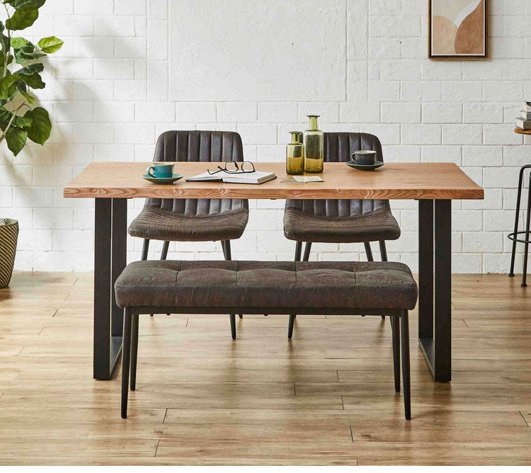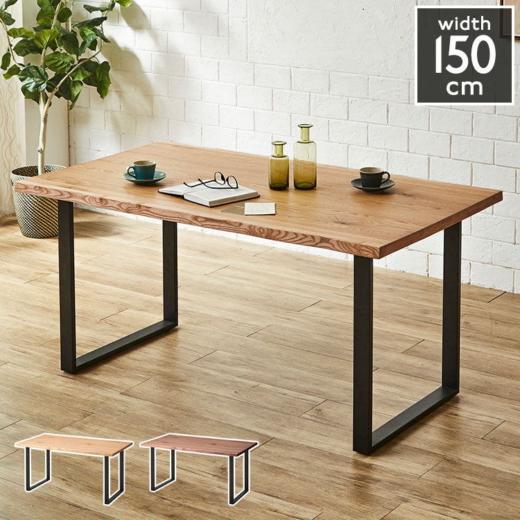 ダイニングテーブル 150cm幅 単品 一枚板風 耳付き オーク ウォールナット 天然木 突板 木目 4人掛け 4人用 モダン おしゃれ 北欧 鉄脚 アイアン レトロ シャカ テーブル 机 インテリア(代引不可)