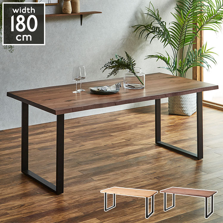 ダイニングテーブル 180cm幅 単品 一枚板風 耳付き オーク ウォールナット 天然木 突板 木目 4人掛け 4人用 モダン おしゃれ 北欧 鉄脚 アイアン レトロ シャカ テーブル 机 インテリア(代引不可)