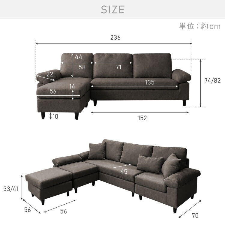 カバーリング ソファ 洗える カウチソファ 幅236 高級生地 大きい 北欧 オットマン ソファー L字 4人掛け 3人掛け オットマン コーナーソファ ポケットコイル 天然木 ローソファ カウチ おしゃれ 北欧(代引不可)