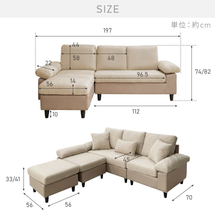 カバーリング ソファ 3人掛け 洗える L字型 幅197 クッション オットマン コーナーソファ ポケットコイル 天然木 大きめ おしゃれ 北欧 レザー ワイド 4人掛け ソファー 脚 リビング ダイニング(代引不可)