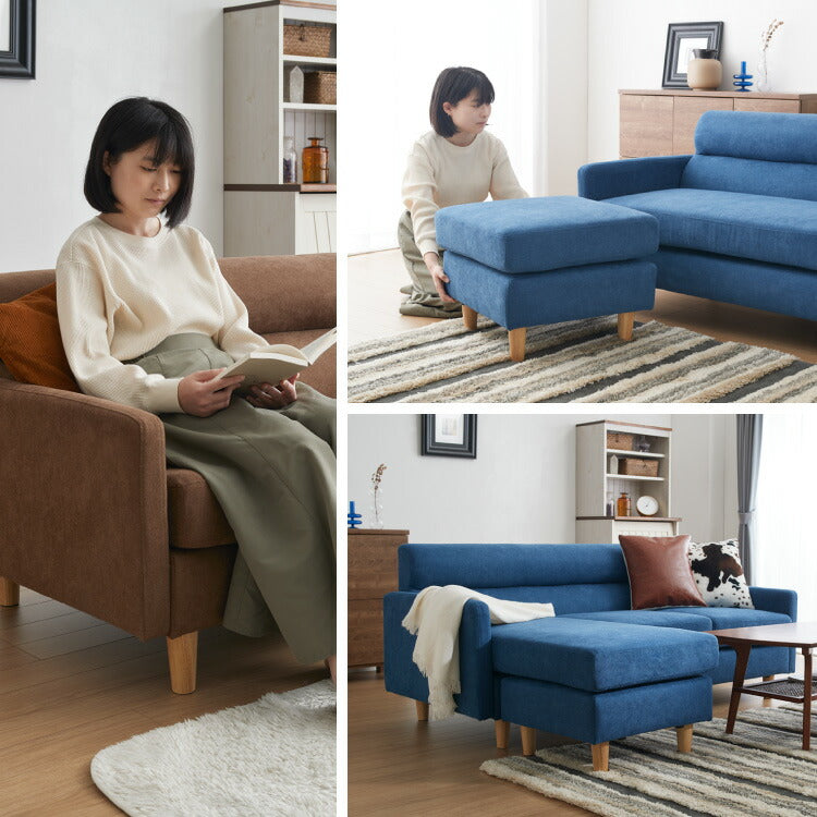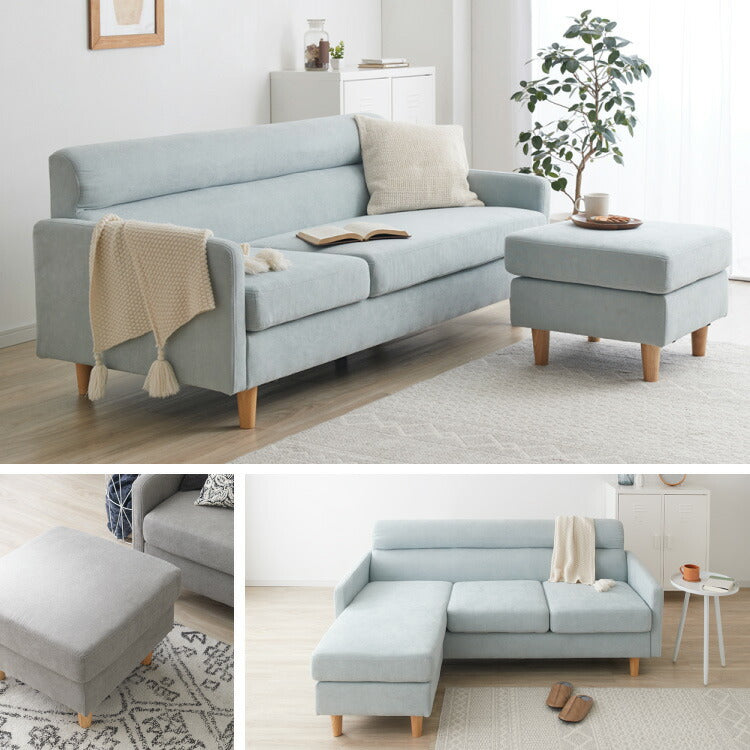ソファ カウチソファ 3人掛け オットマン付き グレー ナチュラル モダン おしゃれ 3way コーナー ローソファ フロアソファ L字 l字 ファブリック モノトーン(代引不可)