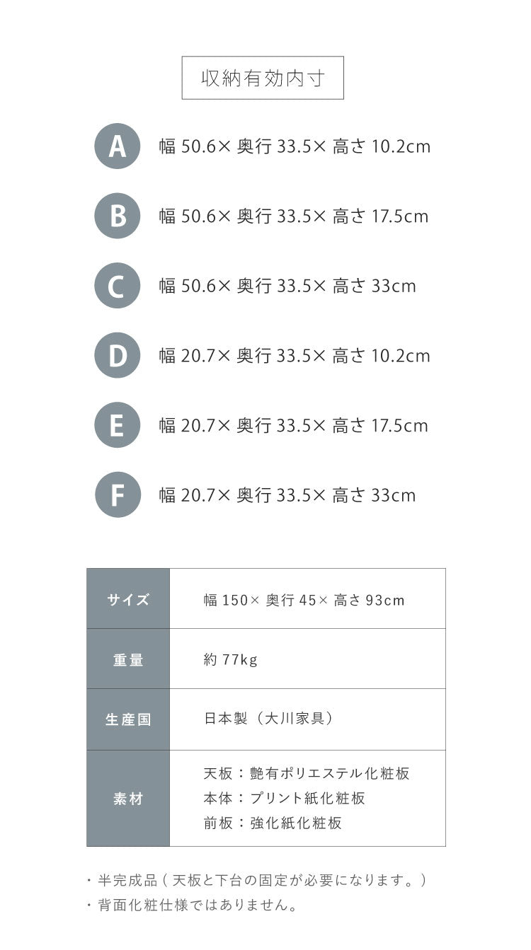 幅150×奥行45×高さ93cm