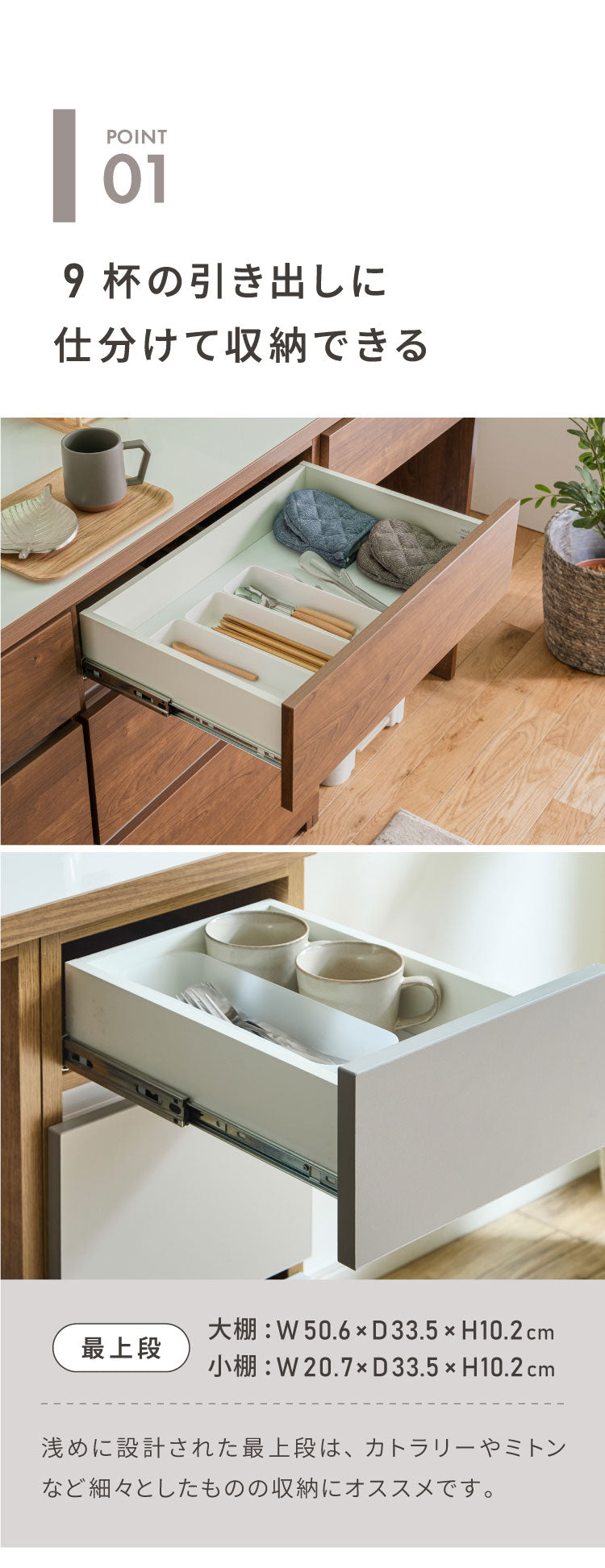 上段:幅50.6×奥行33.5×高さ10.2cm