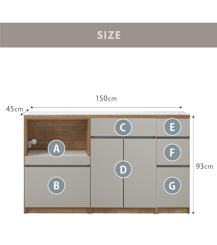 キッチンカウンター 150 幅150cm 高さ93cm オープンスライド 開き扉 【完成品 国産 日本製 大川家具 開梱設置無料】 レンジ台 テーブル 食器棚 キッチンボード 引き出し 大容量 コンセント付き 新生活(代引不可)