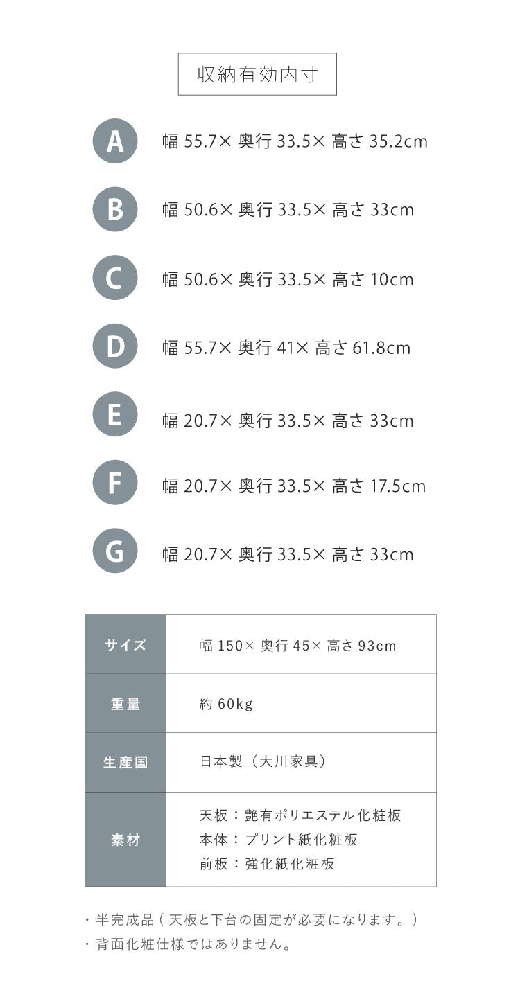 幅150×奥行45×高さ93cm