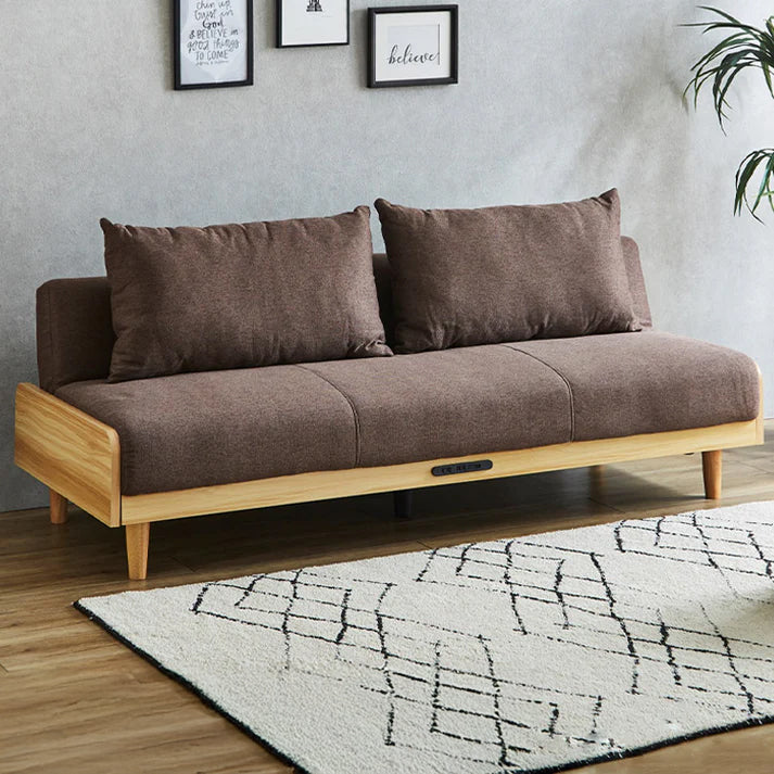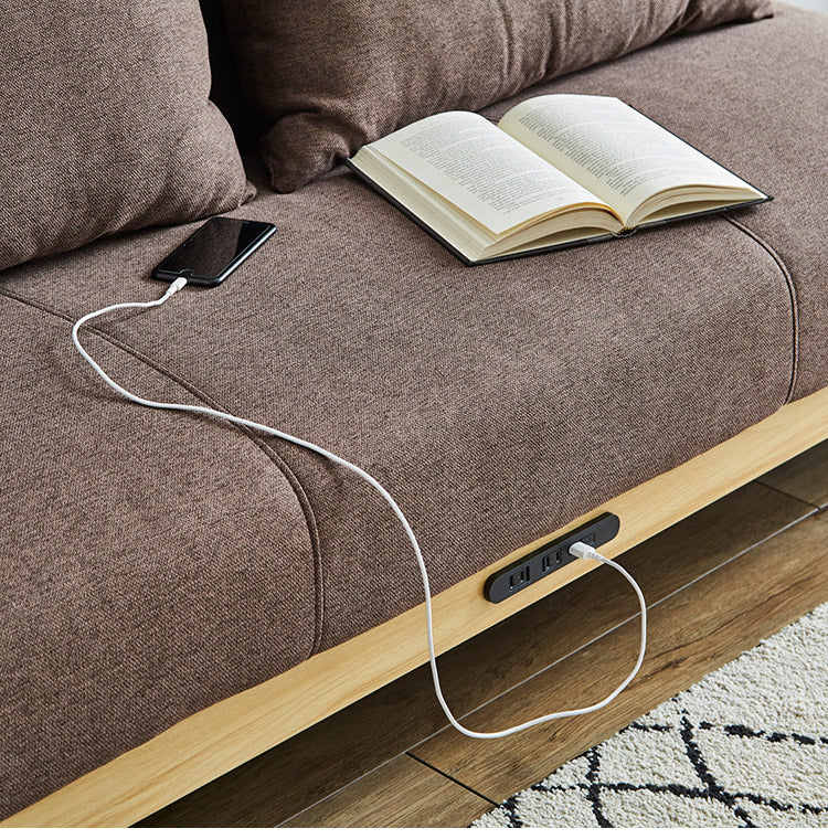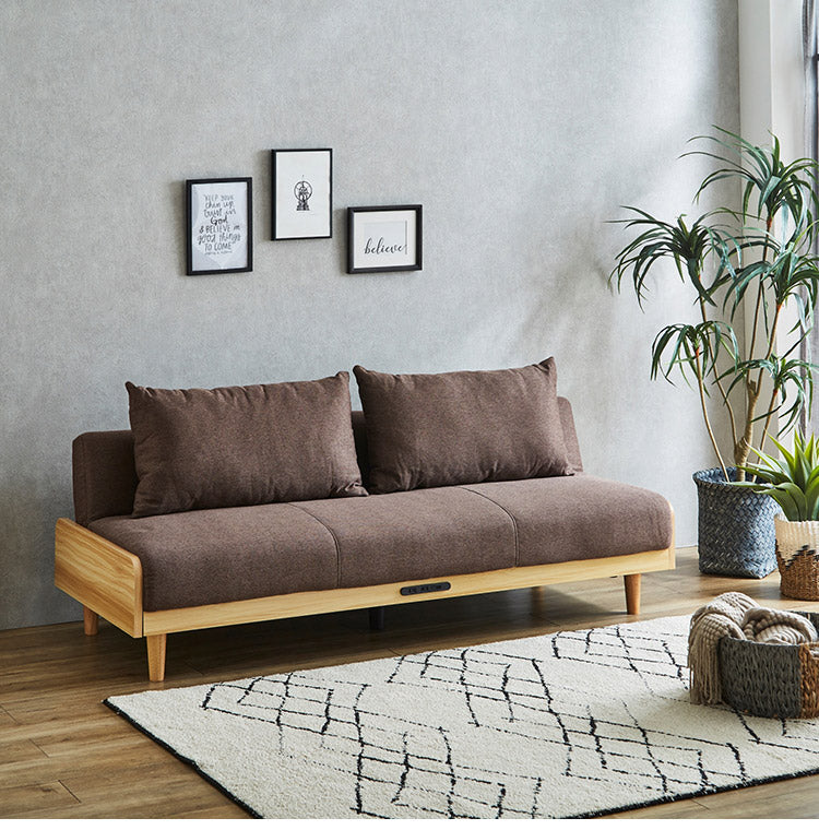 ソファベッド 3段階リクライニング 幅186 ファブリック座面×天然木フレーム クッション付き2口コンセント USBポート ソファーベッド 北欧 おしゃれ(代引不可)