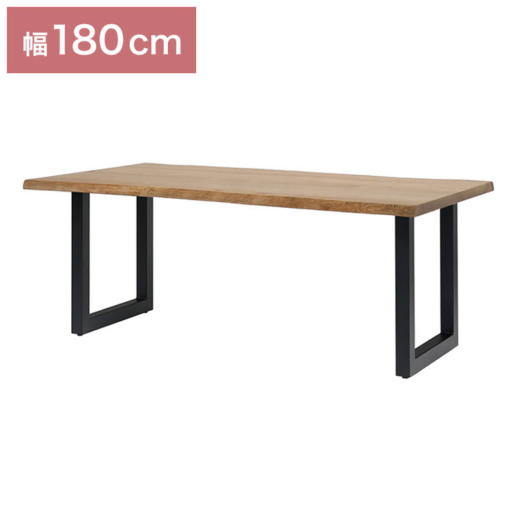 オーク素材とアイアン脚の組み合わせの180cm幅一枚板風のテーブルです。天厚4cmの重厚感と、天然杢ノタ面の本来の木の風合い、そして天板は1cm厚の単板を使用することにより木目がしっかりと出て高級感が感じられます。