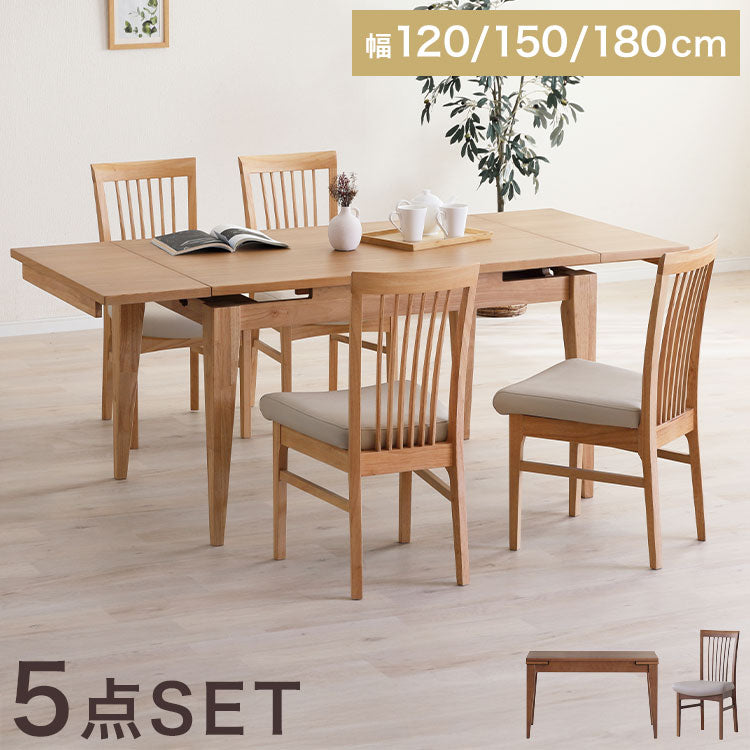 幅120cm伸長式ダイニングテーブル、ダイニングチェア(4脚)
