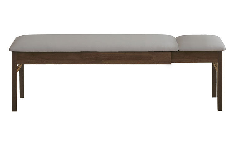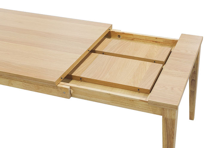 伸張式ダイニングテーブル、ダイニングチェア(2脚)、伸長式ベンチのダイニングセットセットです。こちらのテーブルは中に入っている伸張天板をはめ込む事で4段階で伸張することができ幅130-150-160-180cmまで伸長することが出来ます。脚ごと伸張するため、伸張した後でもテーブル脚の中にチェアを入れることが出来ます。また片側伸張になるので、壁付けした状態でも伸張していただけます。チェアの座面は合成皮革(PVC)になっており耐水性、耐久性、汚れに強い素材を使用しております。ベンチは中に入っている伸張座面をはめ込む事で伸張することができ幅115cm~140cmまで伸長することが可能です。