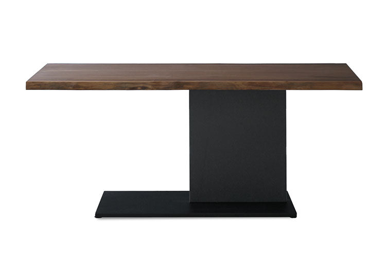 160cm幅ダイニングテーブル×ダイニングチェア(2脚)×150cm幅ベンチのウォールナット素材を使ったダイニングセットです。テーブルはウォールナット素材、一枚板風のテーブルです。天厚4cmの重厚感と、天然杢ノタ面の本来の木の風合い、そして天板は1cm厚の単板を使用することにより木目がしっかりと出て高級感が感じられます。脚も特殊なL字型の真ん中脚になっており、デザイン性もありつつ、どこに座っても脚が干渉しない使いやすさを金そろえております。チェアはウォールナット素材を使用した板座のチェアです。座面はさくりをとっております。スタッキング(積み重ねる)が可能です。ベンチは150cm幅でウォールナット素材を使用した板座のベンチです。ベンチの両側はテーブルに合わせてノタ面風のNC加工(削り)が施されております。