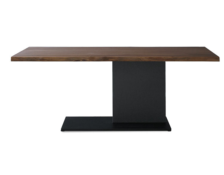 180cm幅ダイニングテーブル×ダイニングチェア(2脚)×150cm幅ベンチのウォールナット素材を使ったダイニングセットです。テーブルはウォールナット素材、一枚板風のテーブルです。天厚4cmの重厚感と、天然杢ノタ面の本来の木の風合い、そして天板は1cm厚の単板を使用することにより木目がしっかりと出て高級感が感じられます。脚も特殊なL字型の真ん中脚になっており、デザイン性もありつつ、どこに座っても脚が干渉しない使いやすさを金そろえております。チェアはウォールナット素材を使用した板座のチェアです。座面はさくりをとっております。スタッキング(積み重ねる)が可能です。ベンチは150cm幅でウォールナット素材を使用した板座のベンチです。ベンチの両側はテーブルに合わせてノタ面風のNC加工(削り)が施されております。