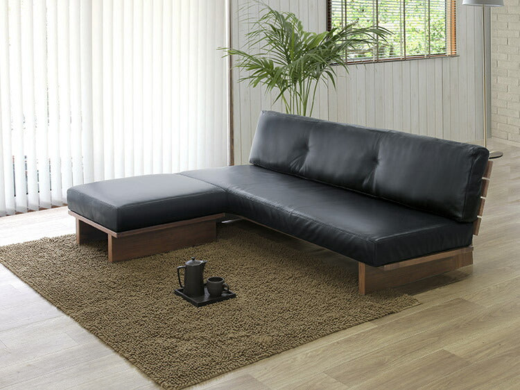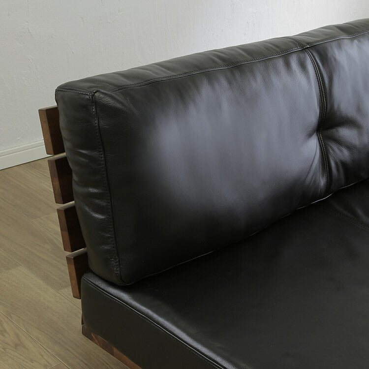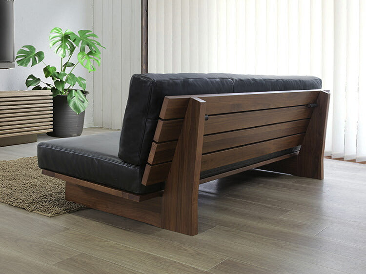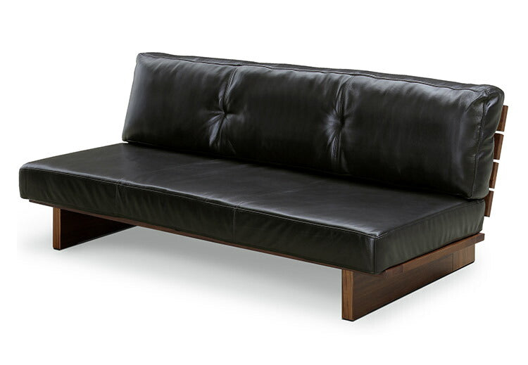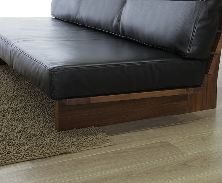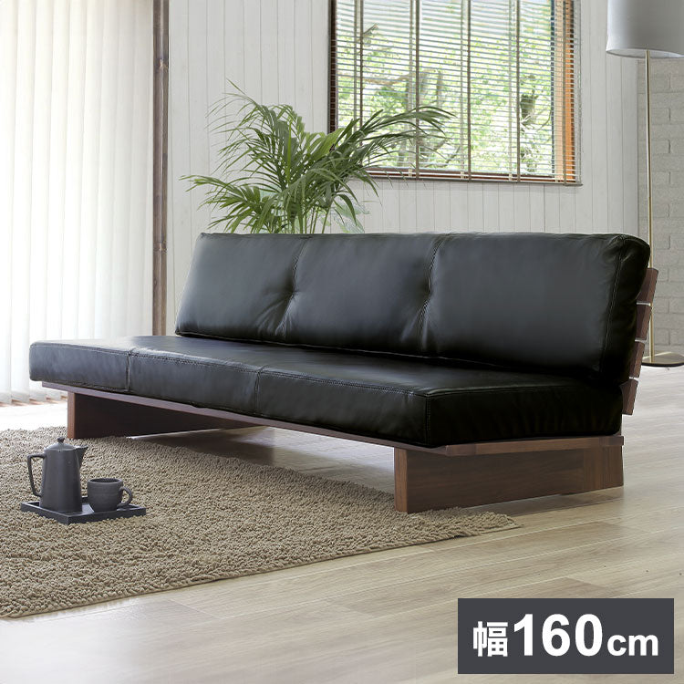 ソファ 2人掛け 幅160cm ローソファ アームレス 座面高33cm 木脚 ウォールナット レザー 本革 フロアソファ リビング ダイニング(代引不可)