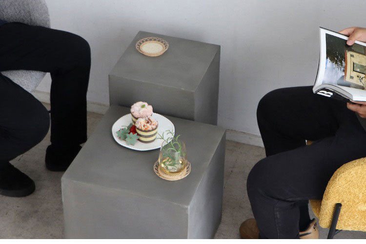 コンクリート塗装を施したMDF素材のキューブ型家具です。