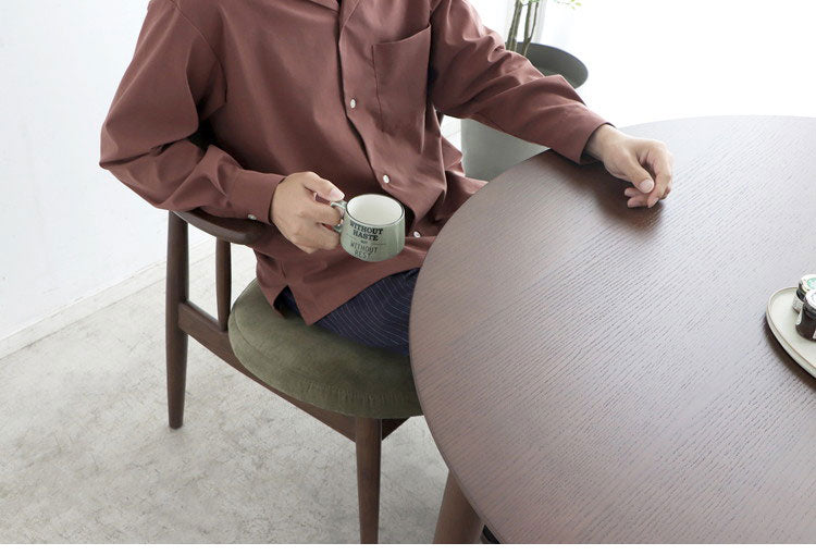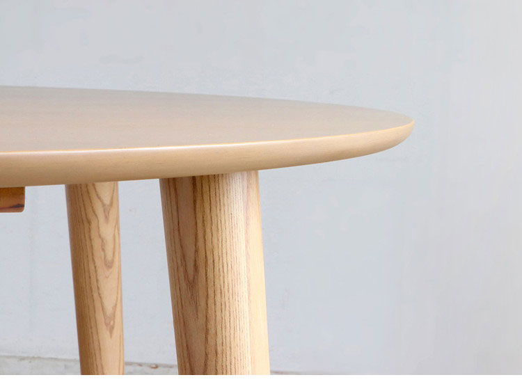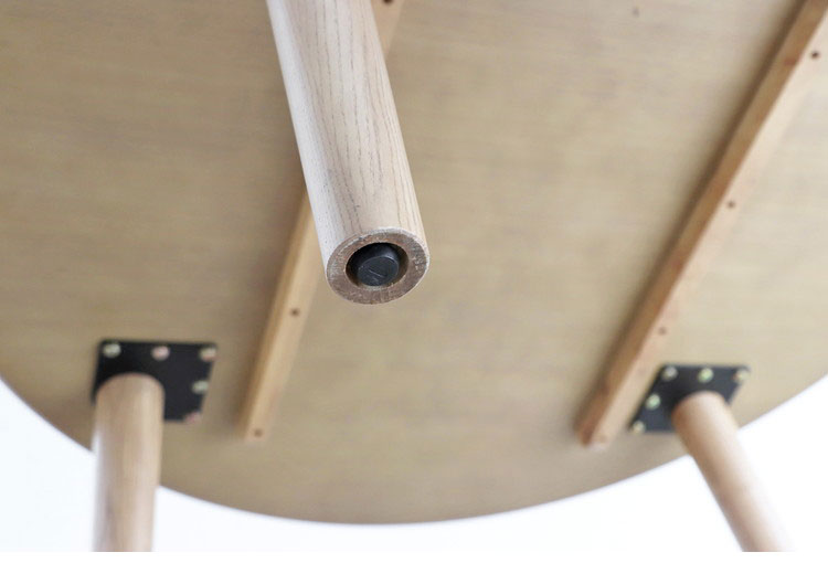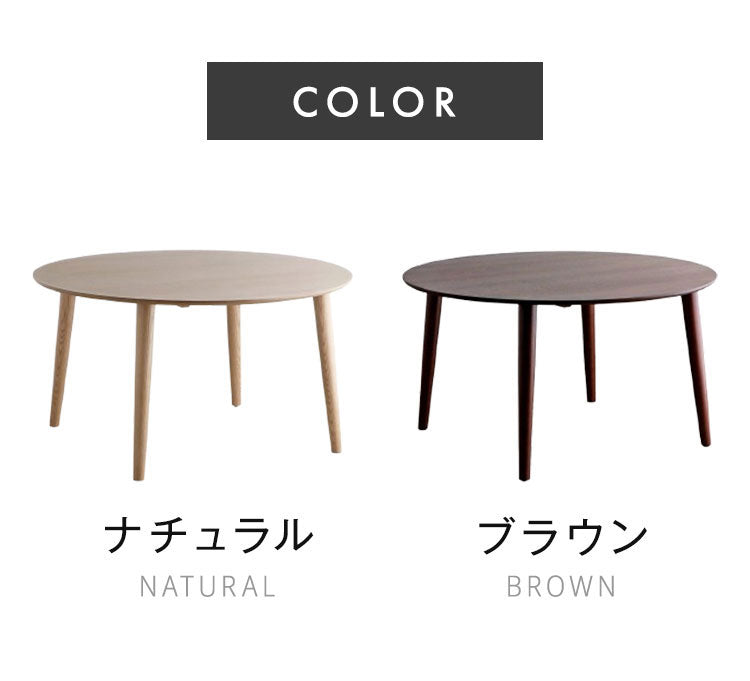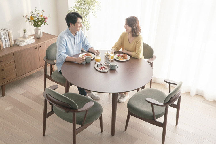 天板は直径120cmの円形で、家族や友人が自然と囲みやすいサイズ感。視線が中央に集まりやすく、会話が弾むレイアウトをつくります。