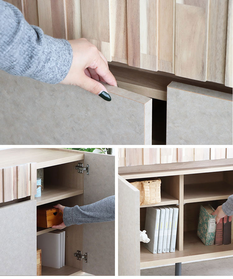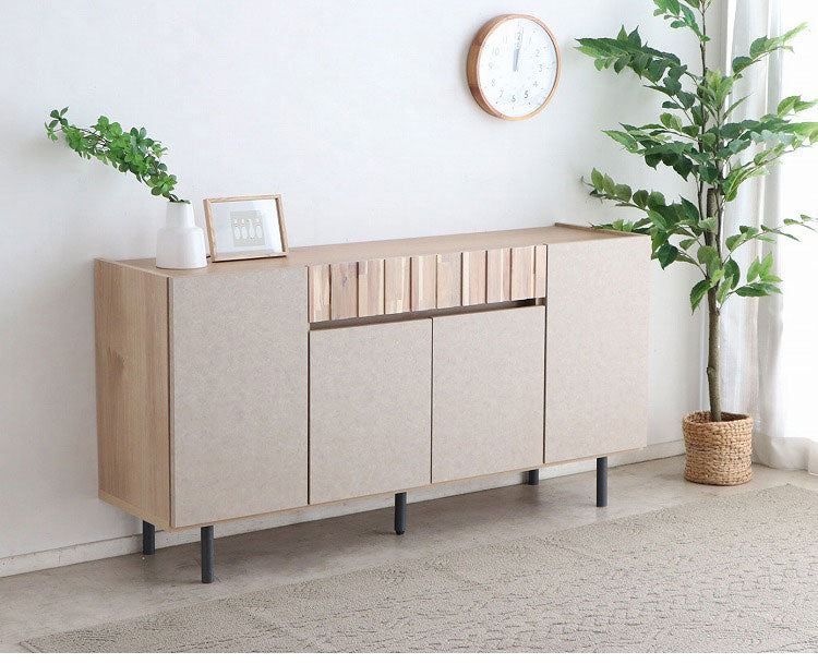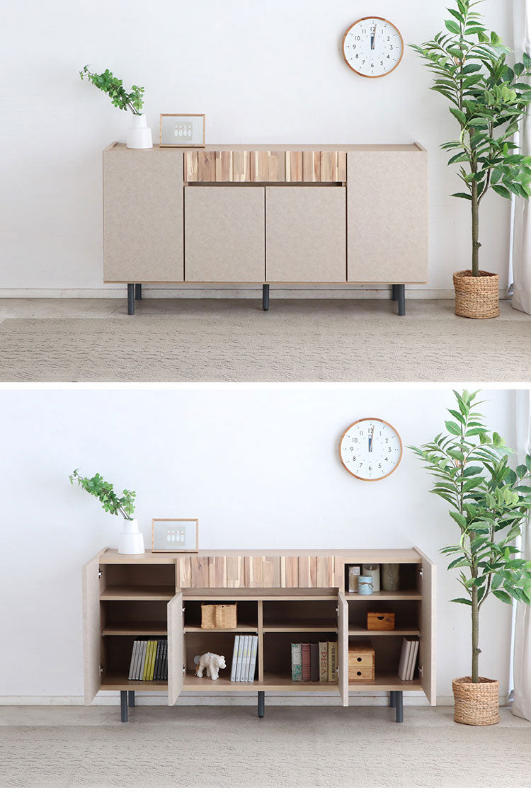 サイドボード クリート 150cm ベージュ収納家具 アカシア集成材 ウレタン塗装 木脚サイドボード ラバーウッド無垢 強化紙化粧板 F☆☆☆☆家具 日本製サイドボード おしゃれ収納家具(代引不可)