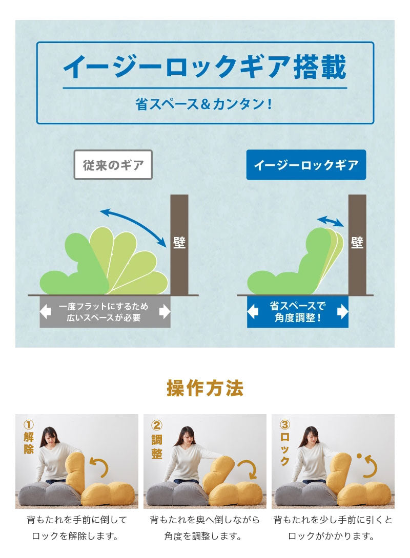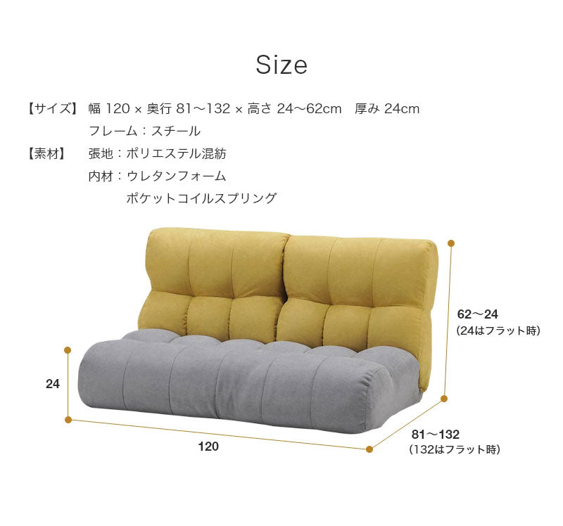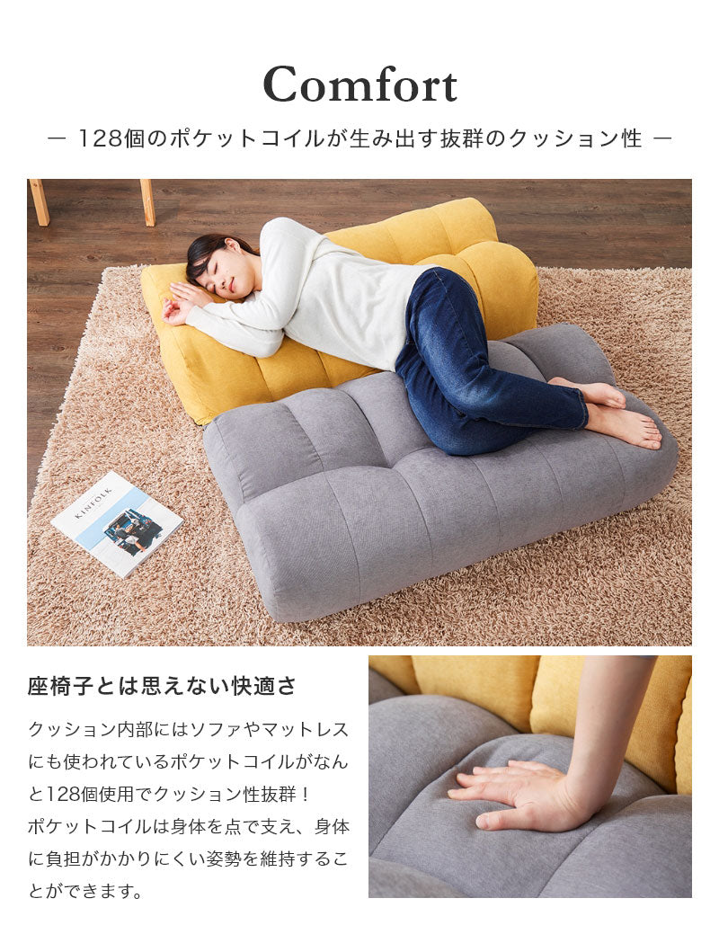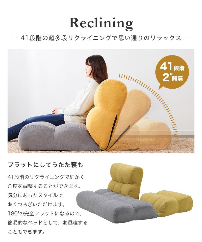 背が左右でセパレートします。座面にポケットコイルを採用したワイドタイプの座椅子です。