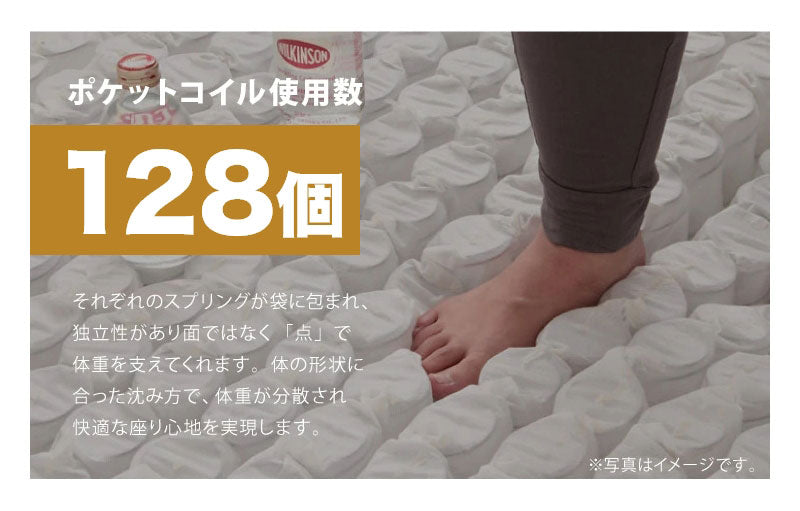 リビングソファで使用している規格のポケットコイルを採用していますのでクッション性抜群です。