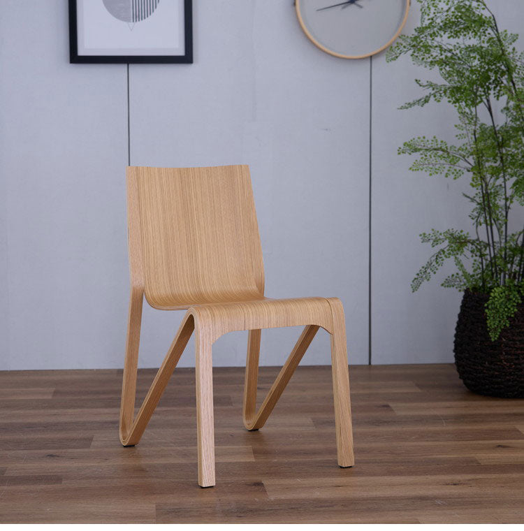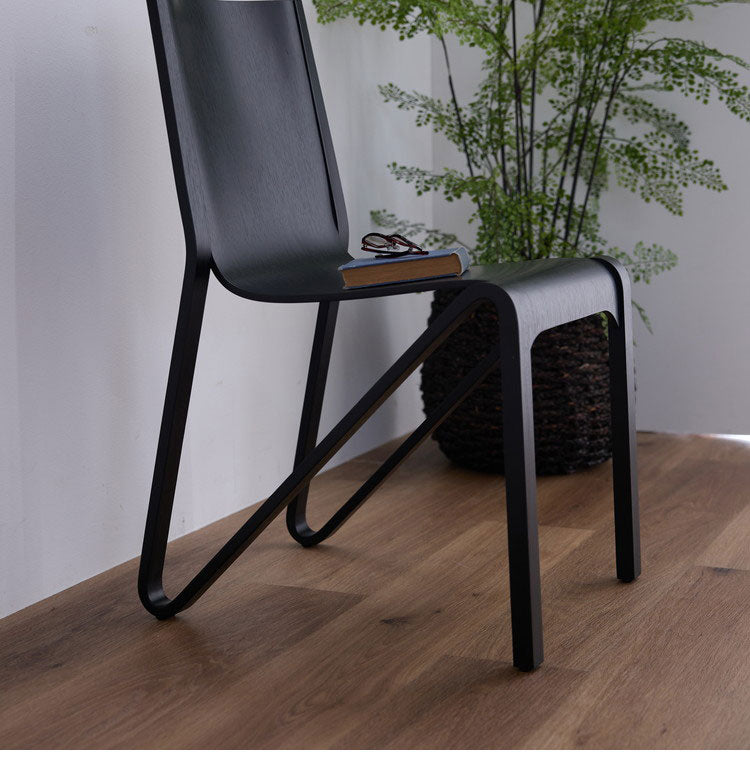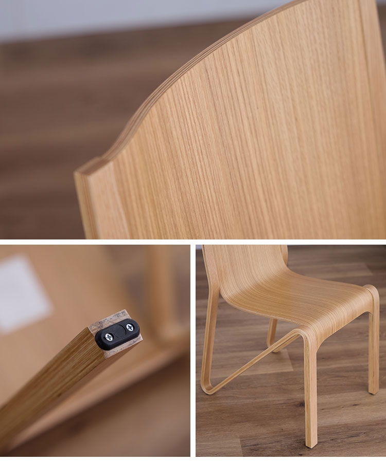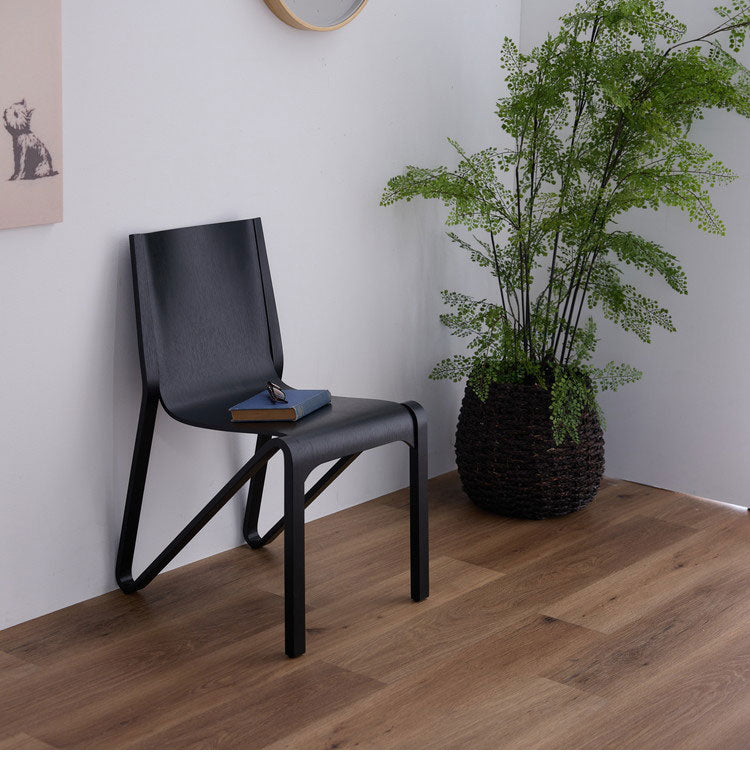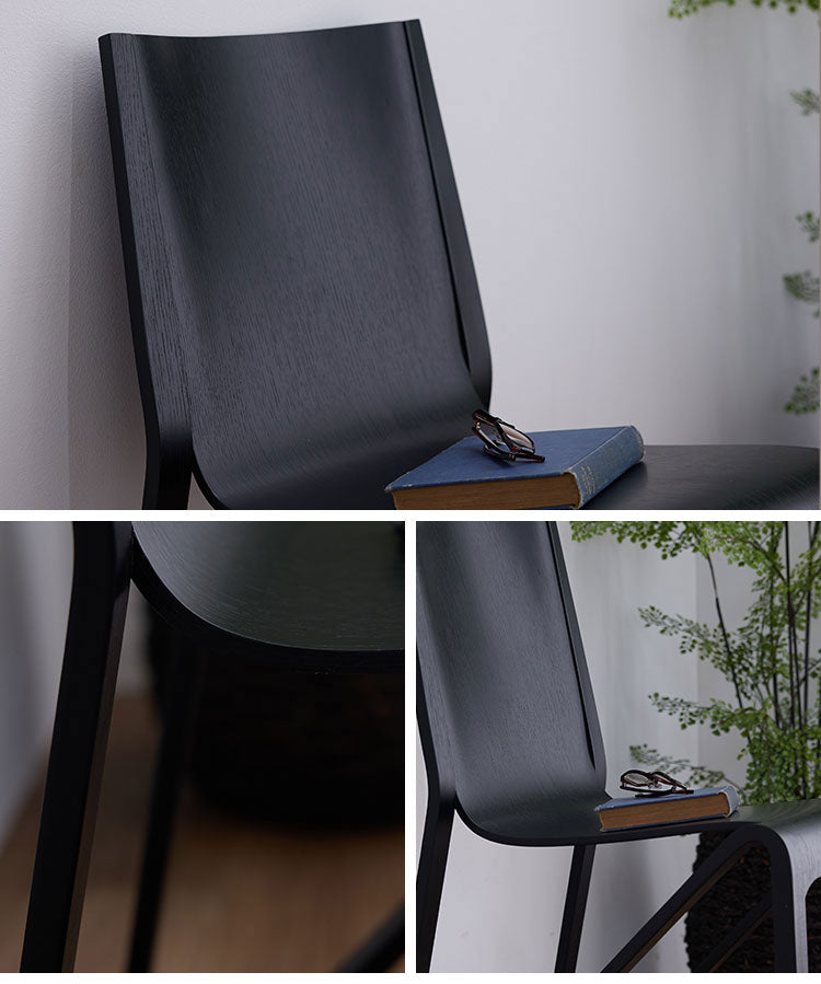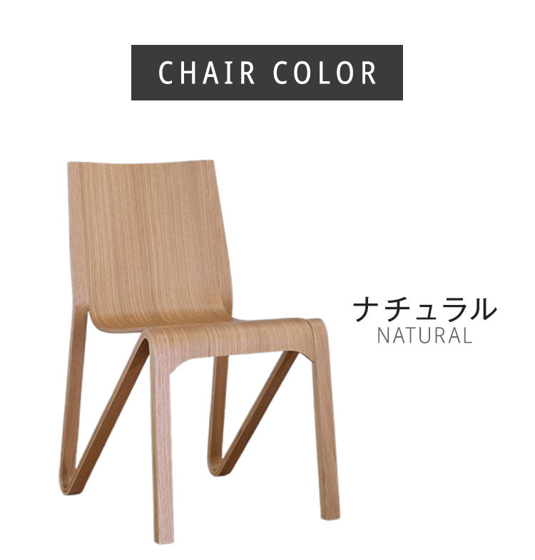 片側は直線に、片側は丸みがかかったデザイナーズテーブルです。片側は直線なので壁にぴったりとつけて使用することができ、空間をすっきりと演出します。角がないことで通路を歩きやすくなったり、脚も内側に入っているので邪魔になりにくい設計となっています。チェアはスタッキング可能なダイニングチェアです。重ねることが出来るので収納時に幅を取りません。背もたれの丸みが座った瞬間、身体に滑らかになじみます。