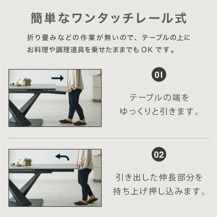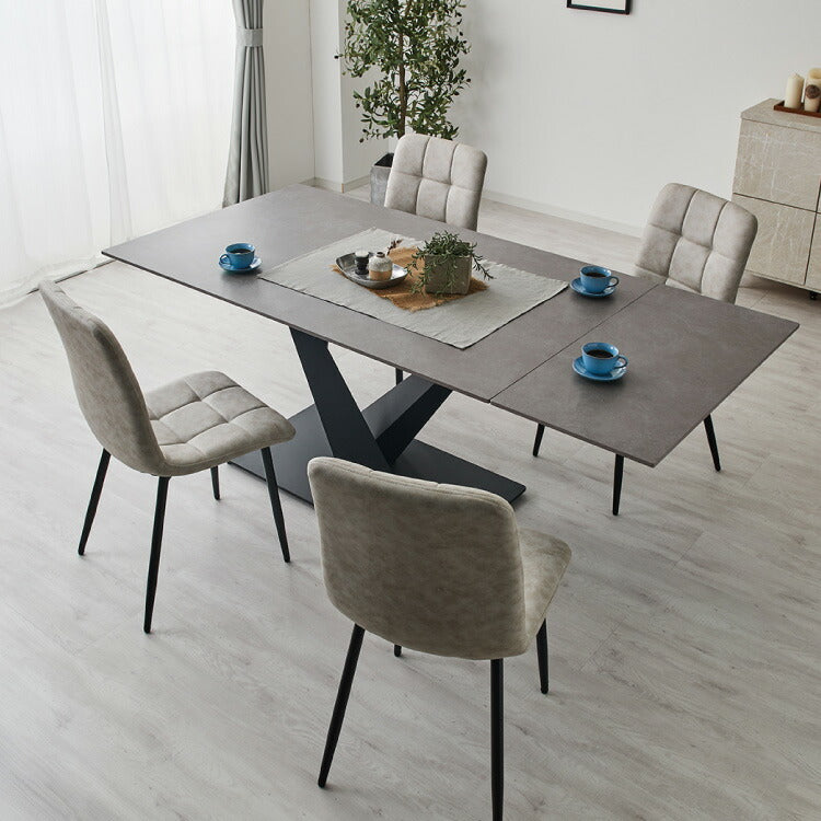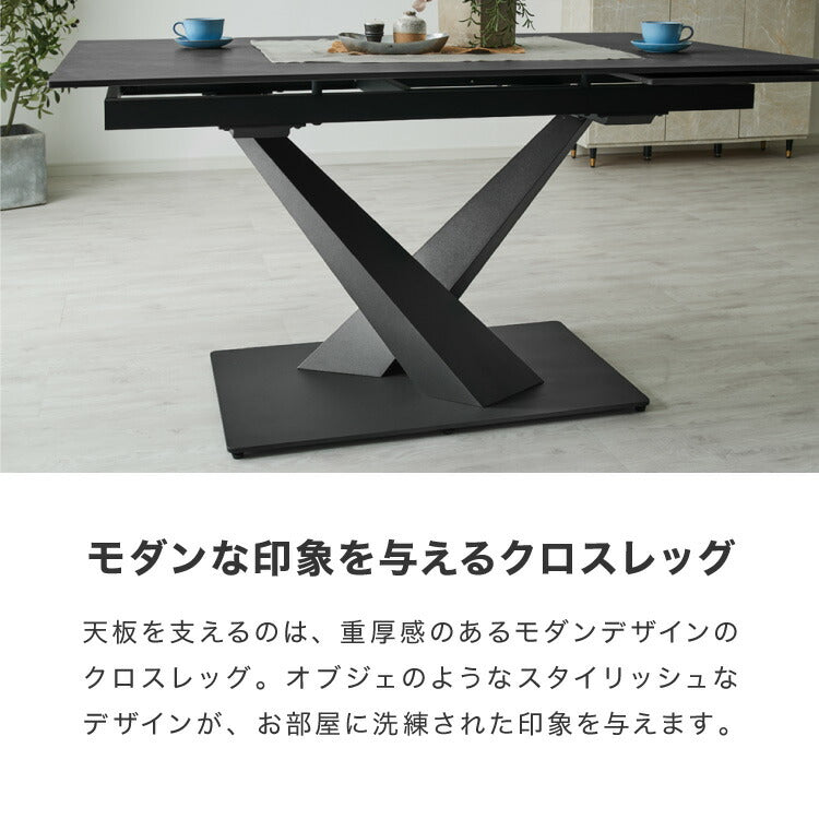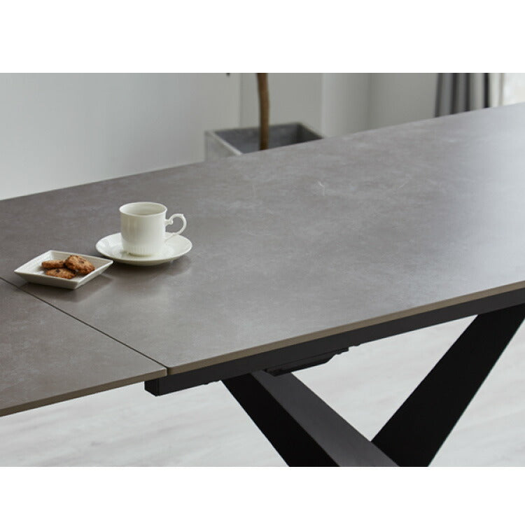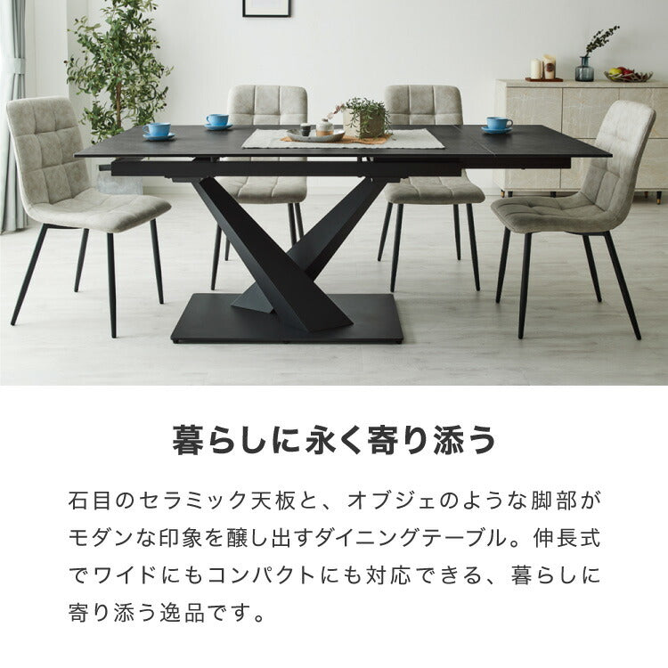 石目調のセラミック天板がラグジュアリーな片側伸長式のダイニングテーブルです。