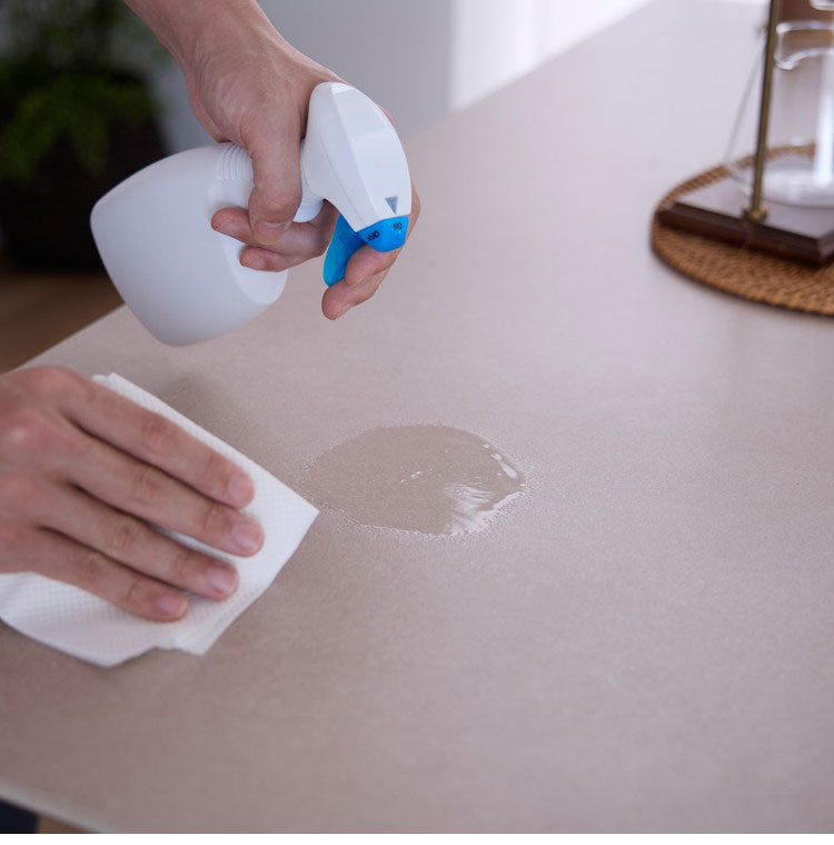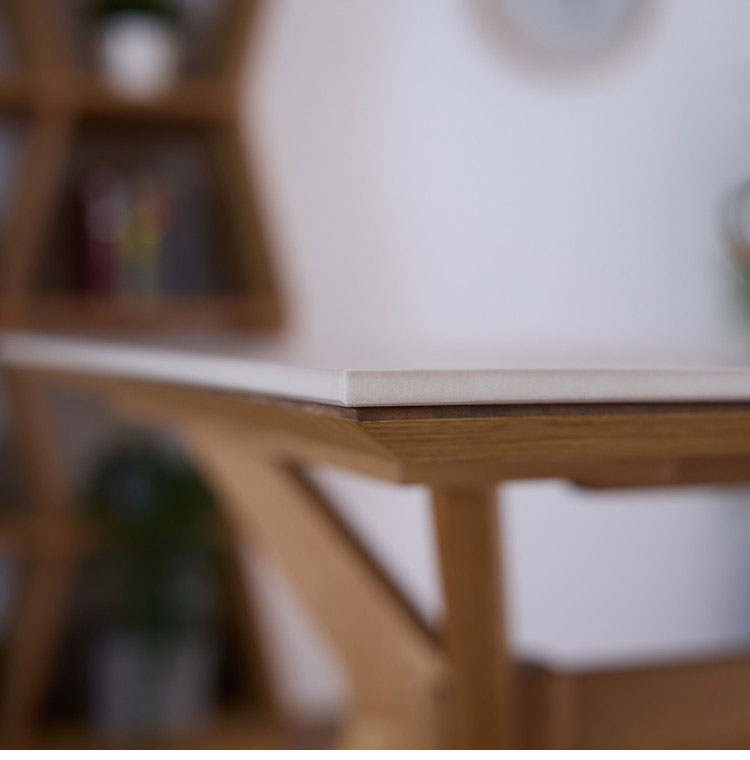 傷や熱に強いセラミック製の天板を使用しています。熱々のフライパンを置いていただくことも可能で、アルコール除菌をしても変色の恐れがありません。脚はオーク材で出来ておりツートンカラーがおしゃれなダイニングテーブルです。