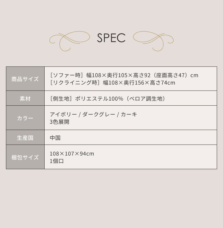 [ソファー時]幅108×奥行105×高さ92(座面高さ47)cm