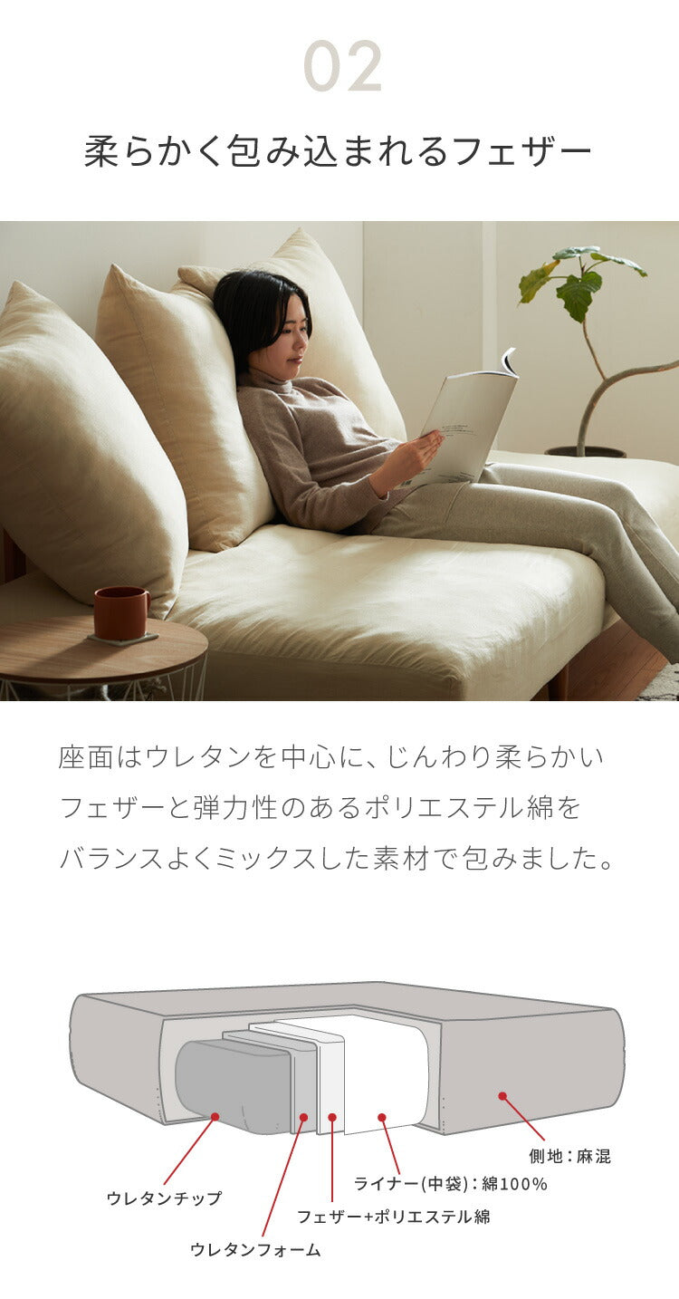 ソファベッド 3人掛け 幅190cm Ferris 天然木 アルダー材 リネン 麻 フェザー 羽毛 クッション付 カバー洗濯可 おしゃれ 北欧 ナチュラル ゆったり 広々 幅広 リビング ソファーベッド フェリス (代引不可)