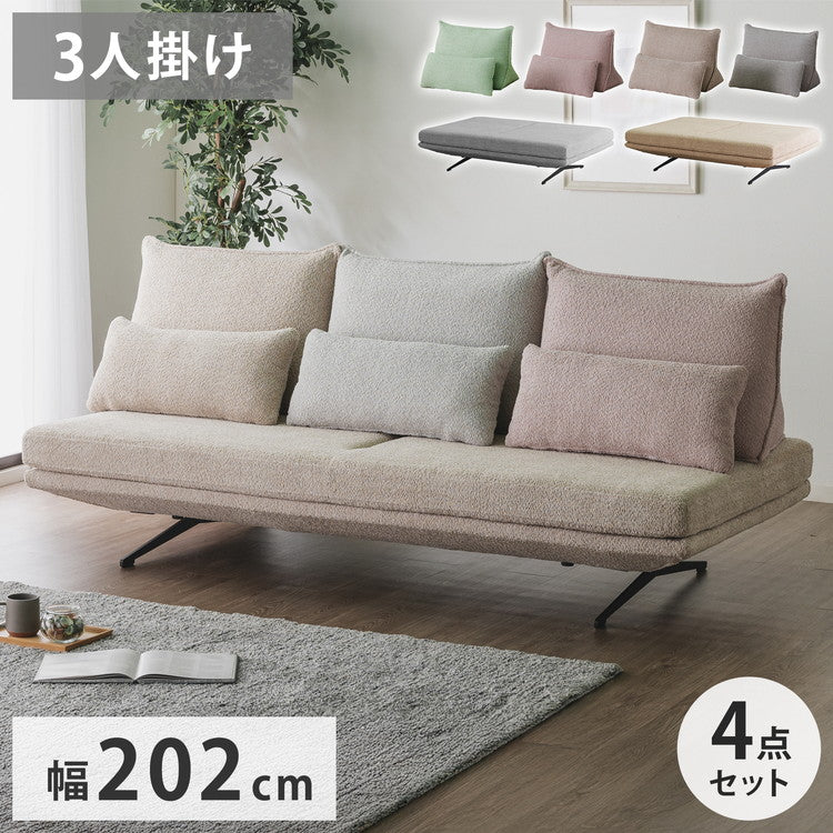アイランドソファ 三人掛け ソファセット 背・クッション 3個セット ブークレ カウチソファ ソファ リビング 北欧風 フェミニン かわいい おしゃれ 高級感(代引不可)
