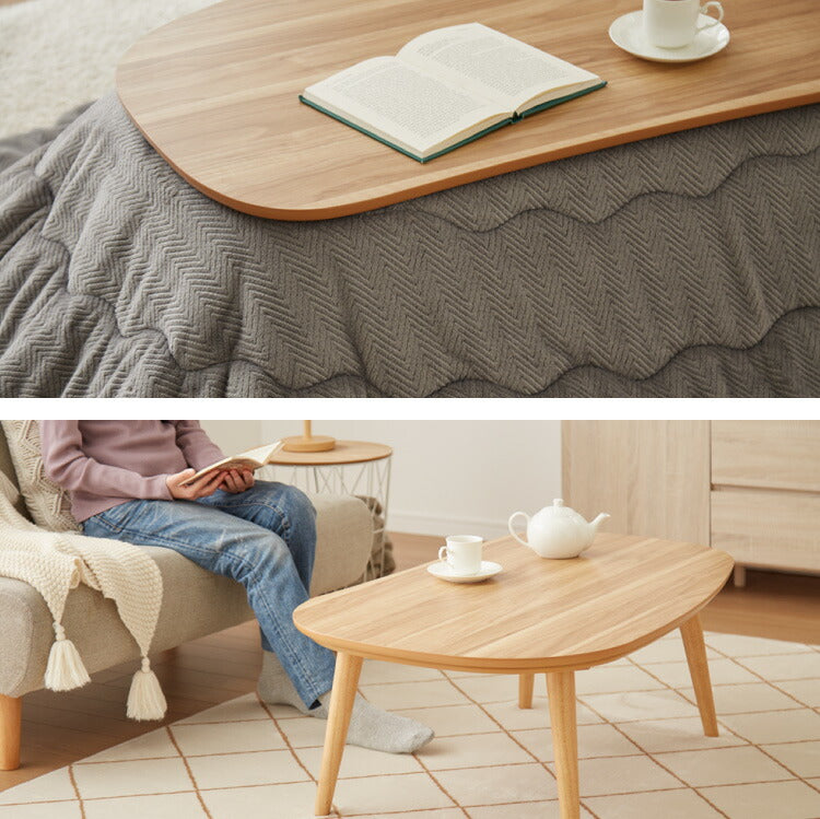 ビーンズ型 家具調こたつ こたつテーブル 105×65cm 節電 長方形 楕円形 丸脚 天然木脚 ラバーウッド 炬燵 おしゃれ 木製 北欧 ホワイト ナチュラル 一人暮らし 新生活(代引不可)