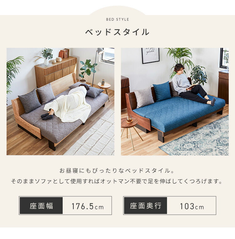 Dorothy II ソファーベッド 幅180cm 日本製 オーク無垢材 洗えるマットレス ライトウェーブ クッション付 おしゃれ ごろ寝ソファ アイランドソファ ソファベッド リビングベッド マットレスソファ ドロシー2(代引不可)